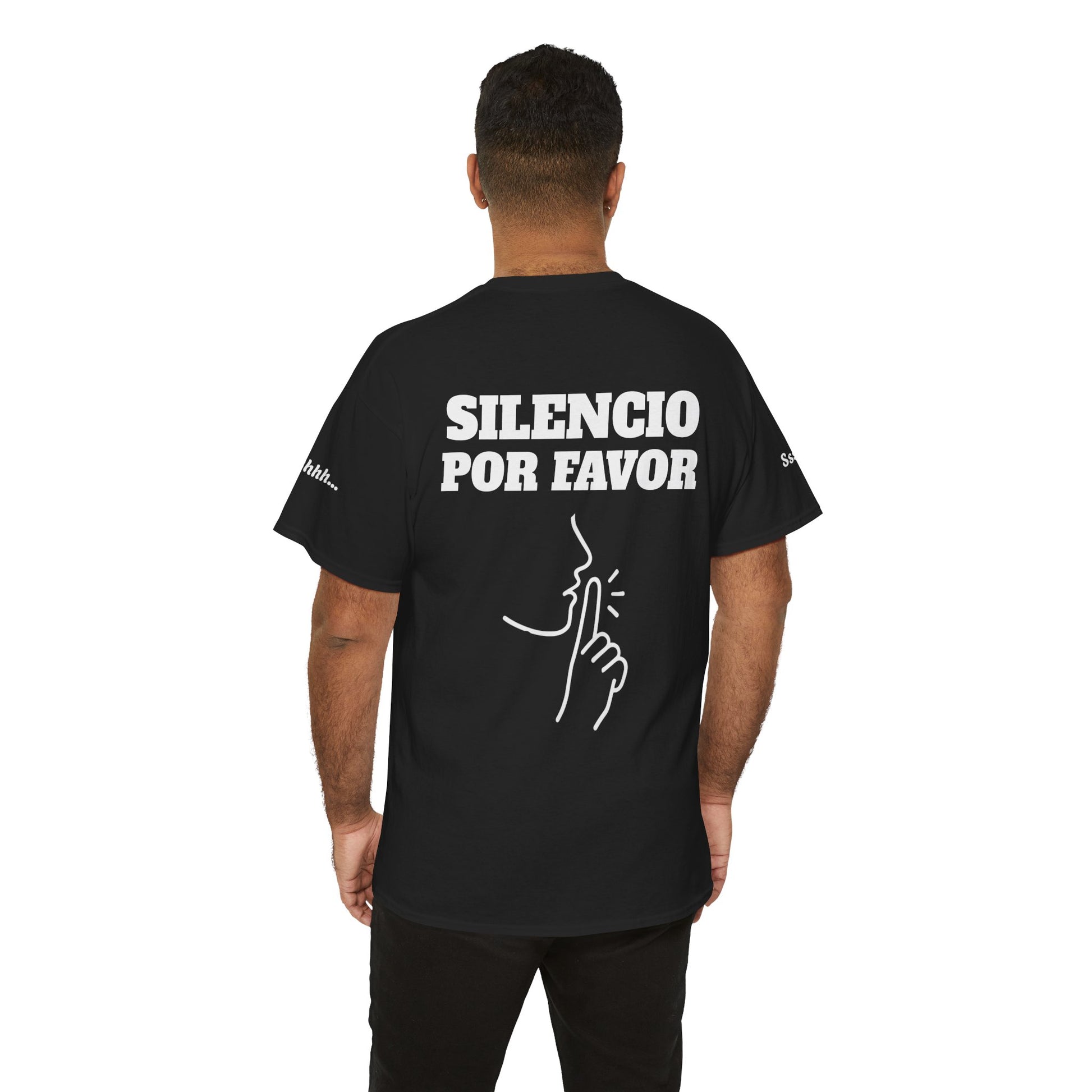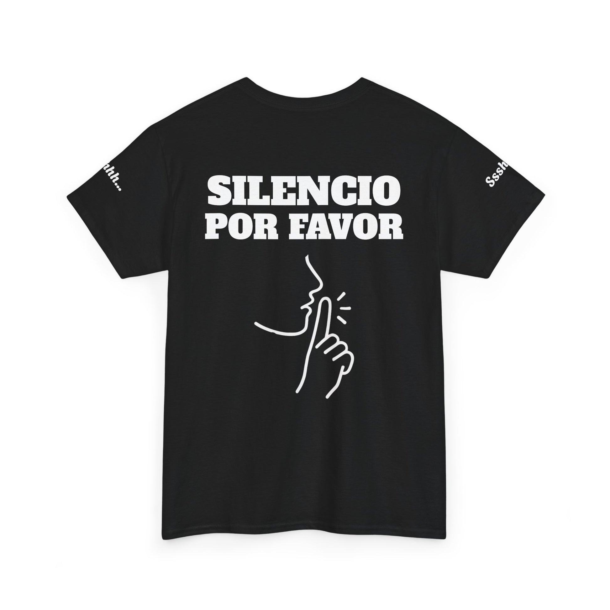En la parte frontal, el mensaje claro y contundente: “VAS TÚ”, para que ya nadie te mire con cara de duda cuando toca entrar en directo. En la espalda, un elegante “silencio por favor”, porque los micrófonos captan más de lo que deberían. Y, por si queda algún rezagado: “Ssshh..” discretamente impreso en las mangas, el susurro textil que dice lo que tú ya estás cansado de repetir.